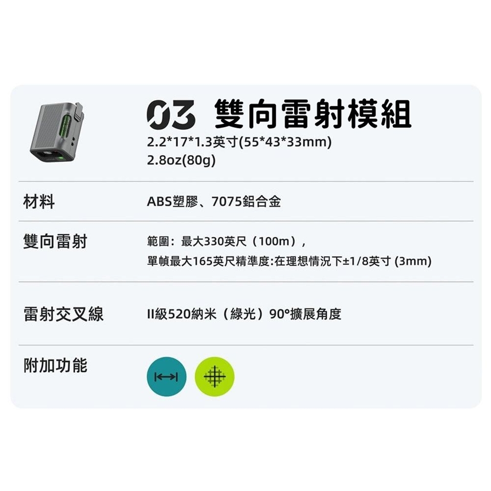 ✅ 328呎雙向雷射、90°展角交叉線指引