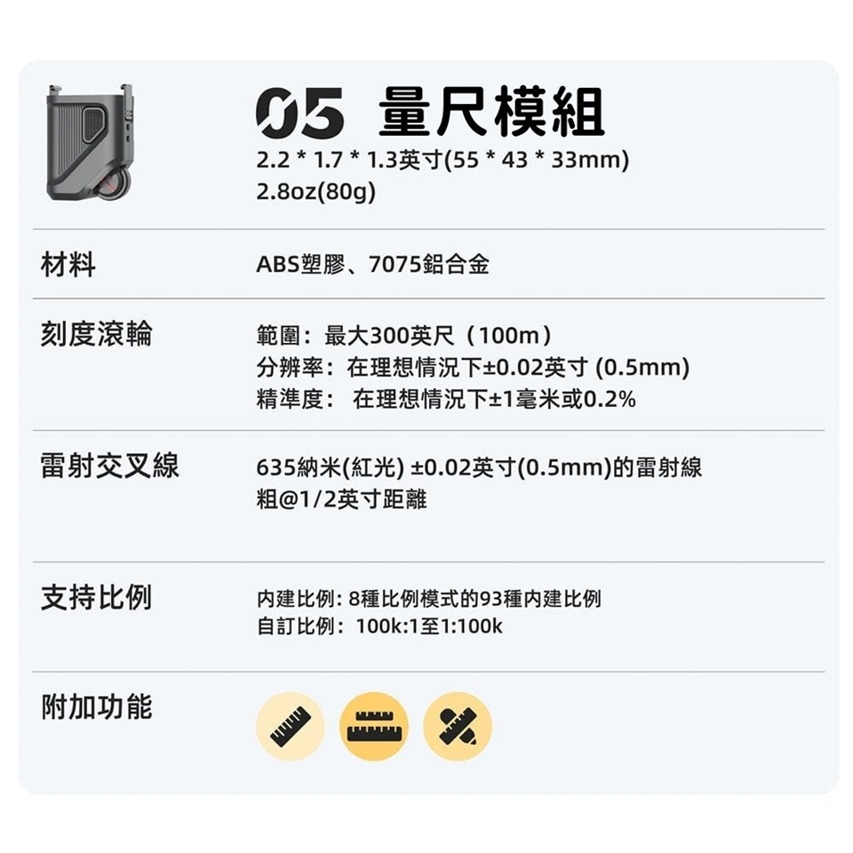 ✅ 支援雷射測距、空間建模、比例尺、滾輪量尺