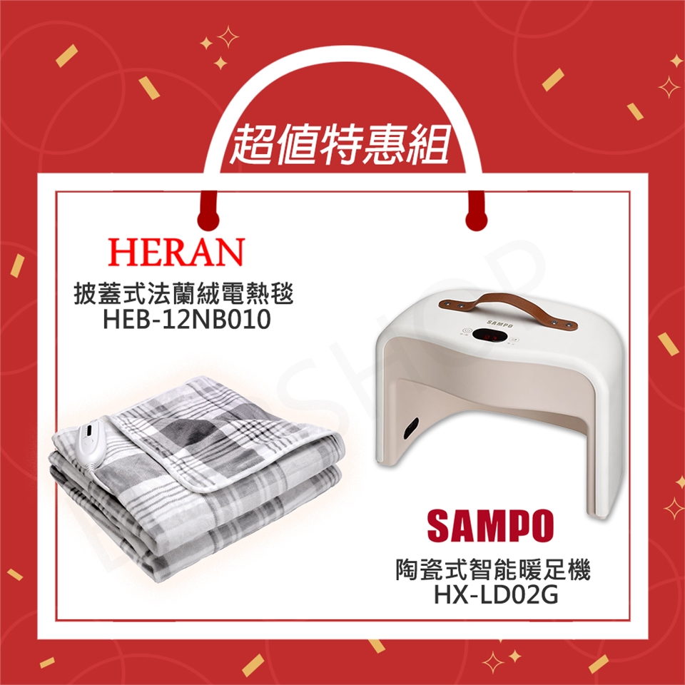 此為超值組合優惠!! 【聲寶SAMPO】陶瓷式智能暖足機 HX-LD02G+【禾聯HERAN】披蓋式法蘭絨電熱毯 HEB-12NB010的合購賣場