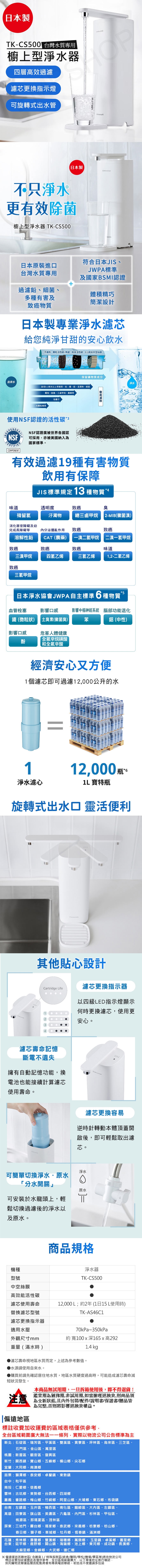 【國際牌Panasonic】櫥上型淨水器 TK-CS500