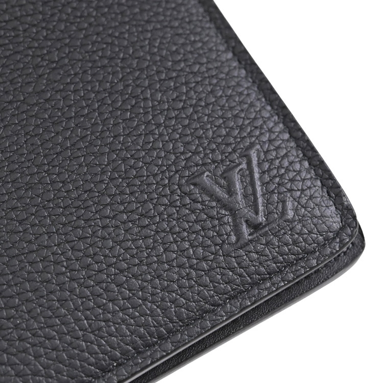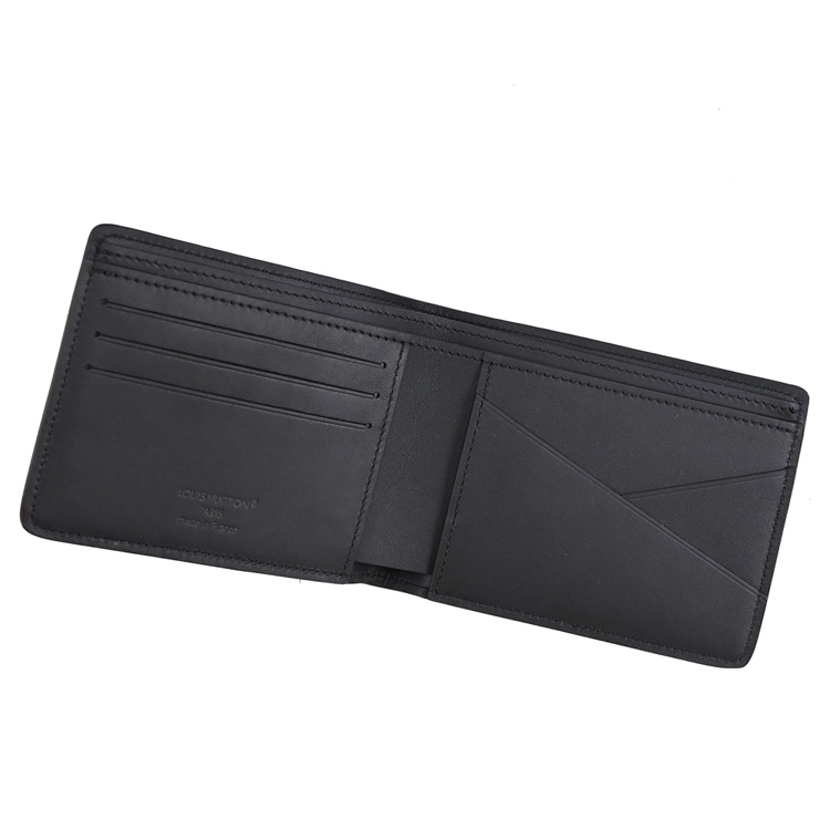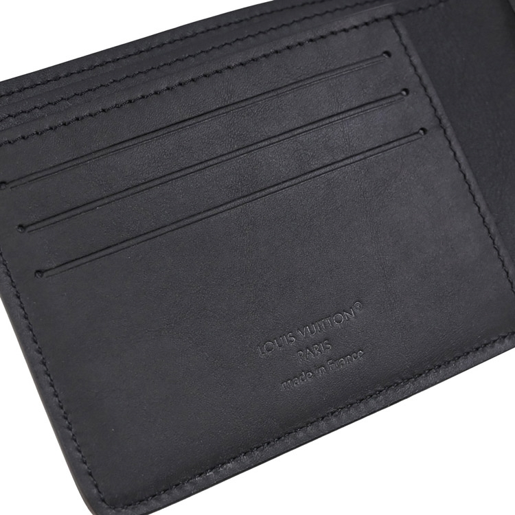 LV 這款小型的Multiple短夾,是熱銷的經典款,以蠟面小牛皮製成,皮革柔軟而耐用,LV Initials壓花標誌與皮革的細緻粒面,設有5卡片夾層+2夾層+2鈔票夾層,可輕易收納入外套口袋,設計非常實用。
