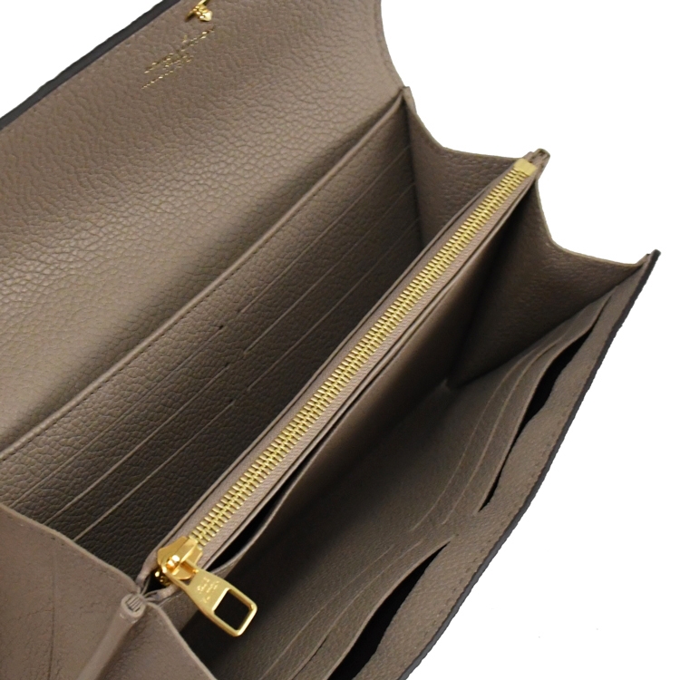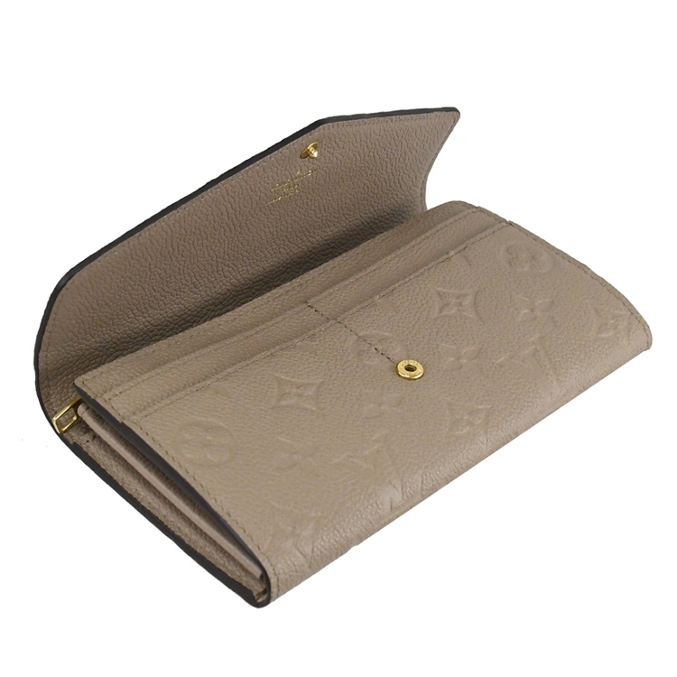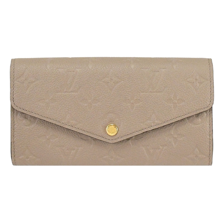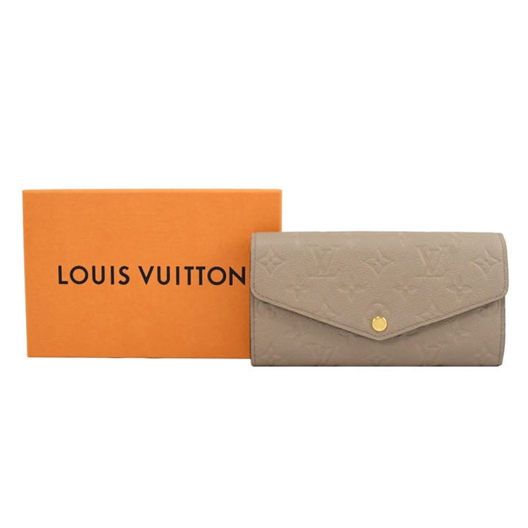 LV 這款靈巧的Sarah長夾,採用精緻的Monogram Empreinte壓紋牛皮製作,整體設計優雅,設有多個口袋,優雅又女性化的設計,拉鍊開口/內有16信用卡夾+2貼袋+2風琴式夾層+1拉鍊零錢袋,錢包外形小巧但內部寬敞,流滿都會時尚味道,是款時尚的單品配件。