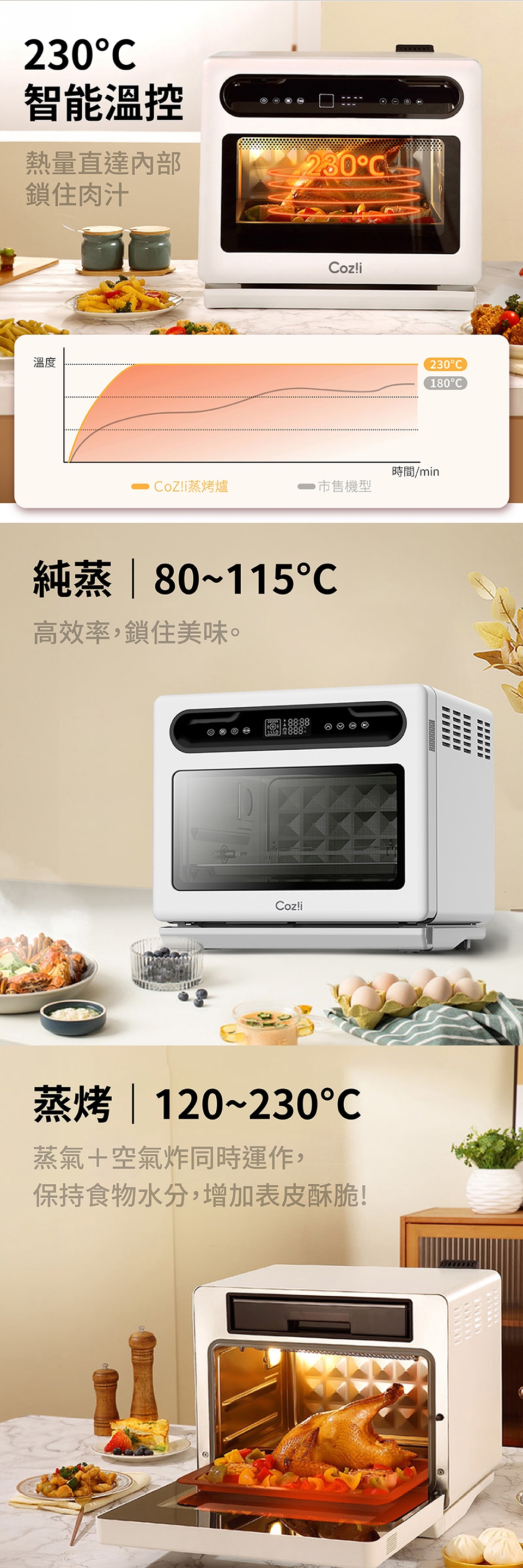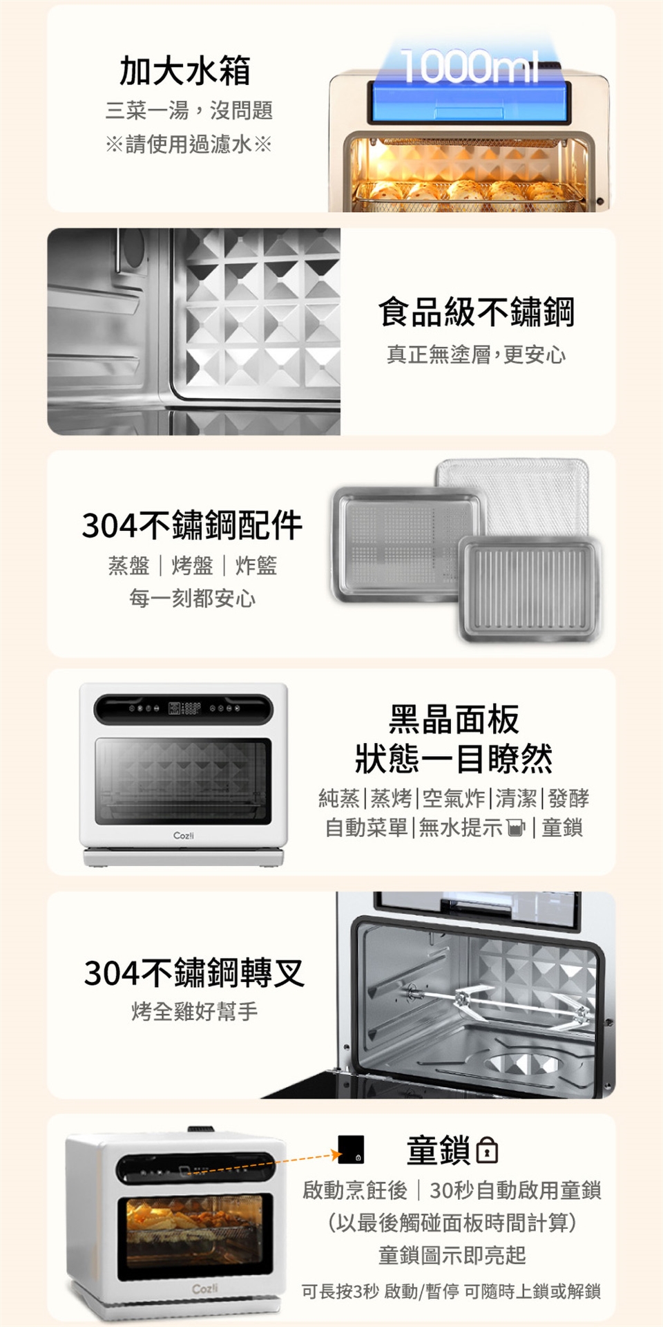 ▼ 【妮雅媞】Coz!i廚膳寶 直噴過熱水蒸氣 炙燒氣炸蒸烤爐 12機合一 ▼