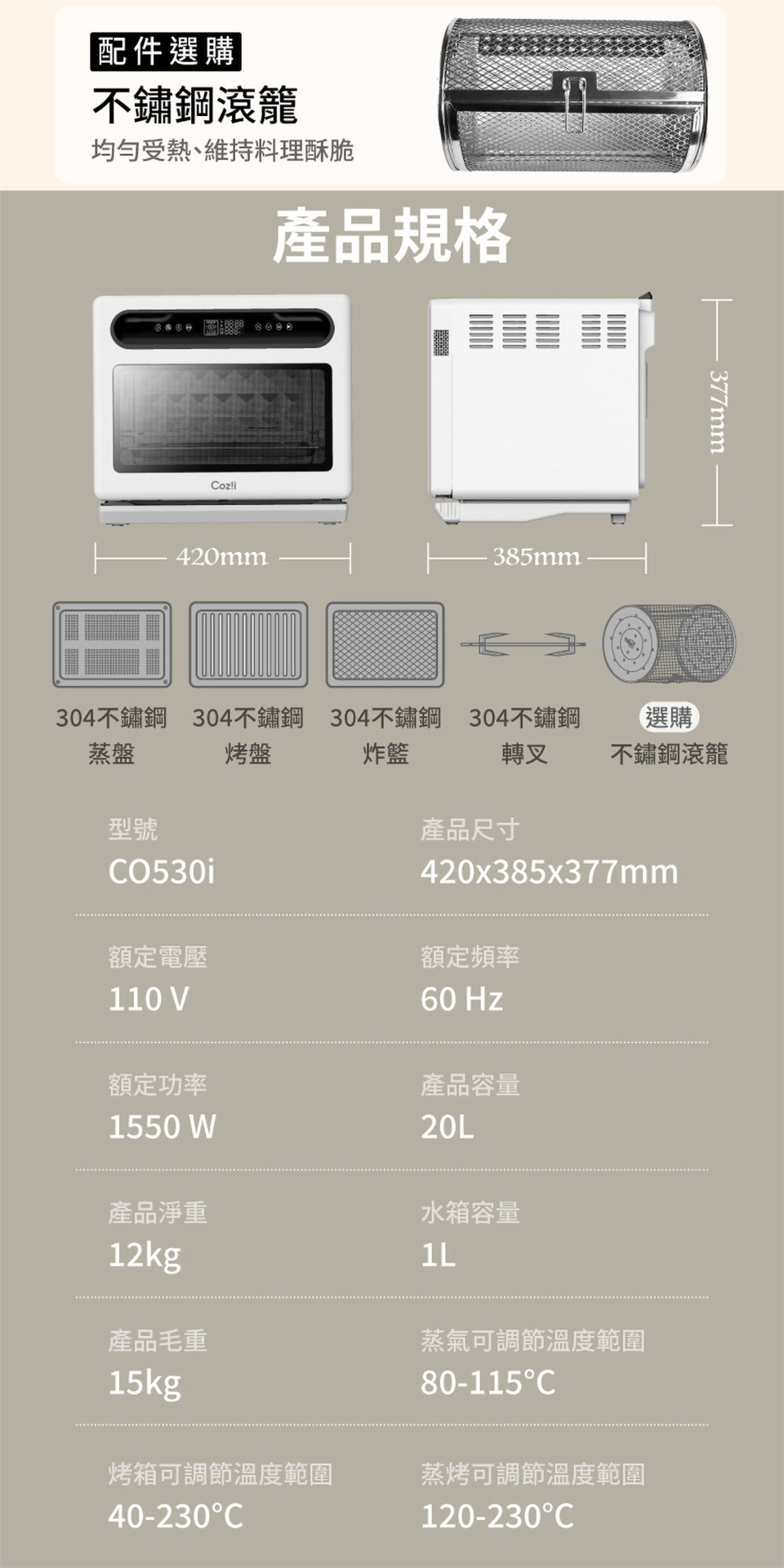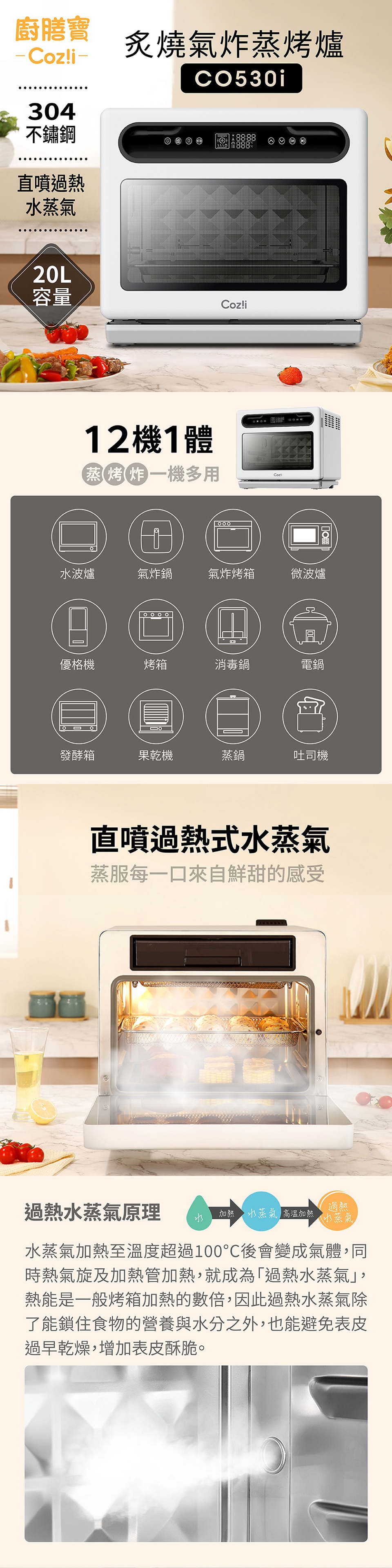 ▼ Coz!i廚膳寶 直噴過熱水蒸氣-炙燒氣炸蒸烤爐(20L, CO530i) ▼