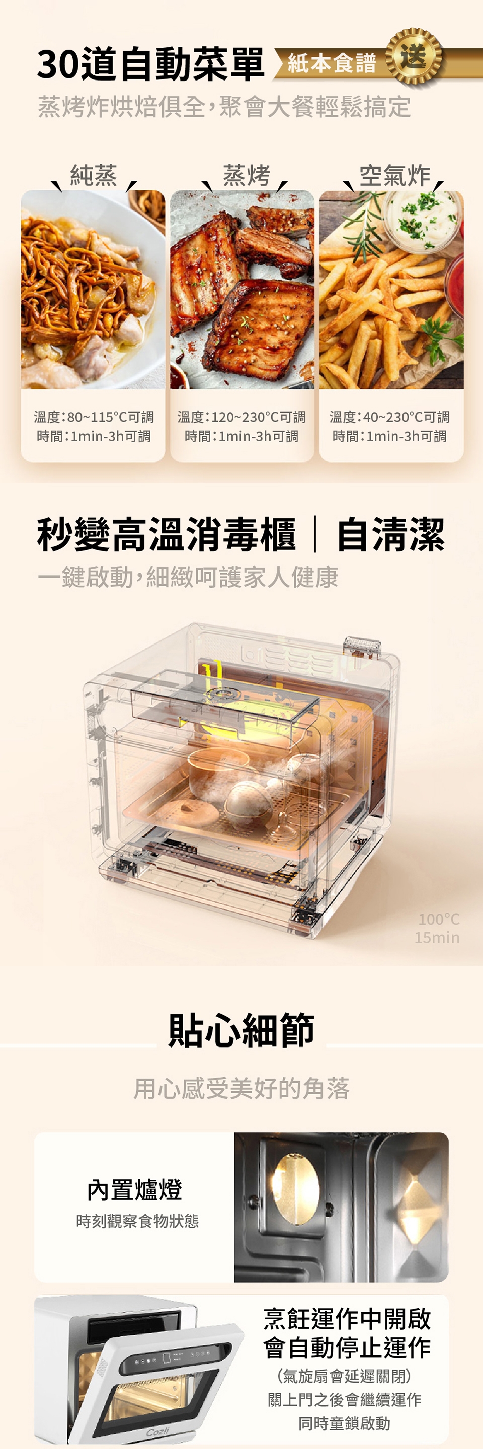 「這不是普通蒸烤箱!是蒸爐(蒸滷燉,氣密內膽還有壓力鍋效果)+氣炸+發酵+烘焙+烤箱的終極合體!」