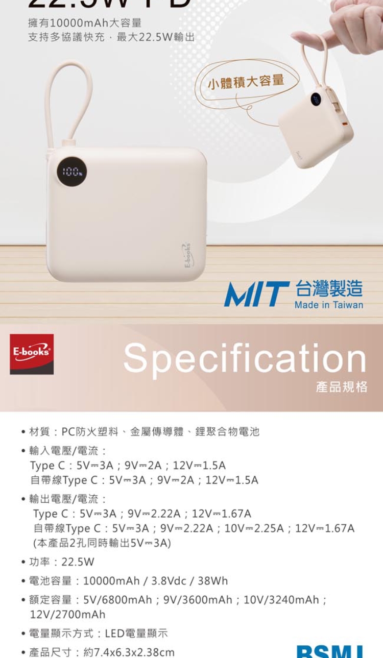 自帶線Type C:5V⎓3A;9V⎓2.22A;10V⎓2.25A;12V⎓1.67A