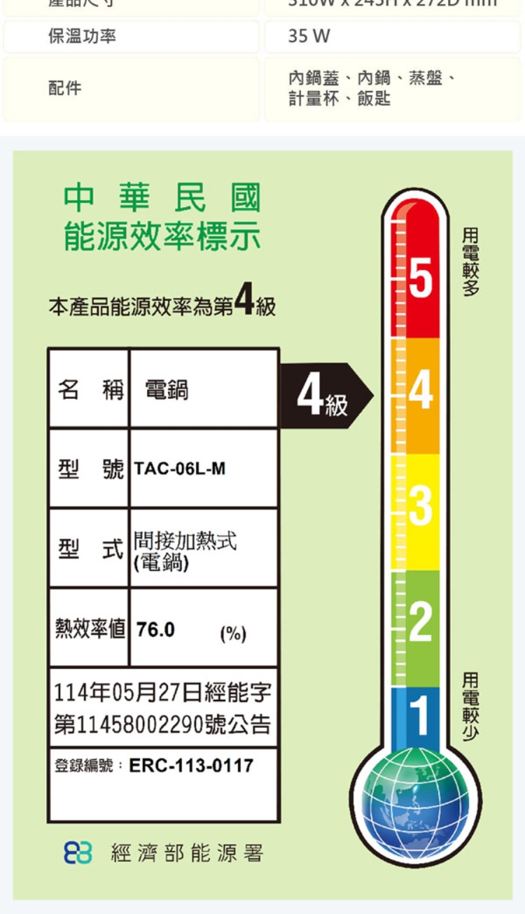 ★ 6人份電鍋