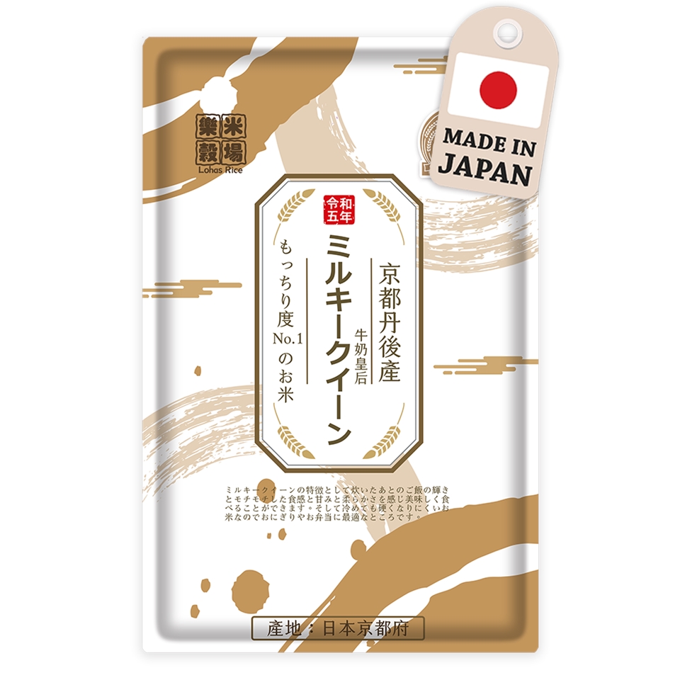 日本京都府丹後的土壤富含礦物質豐富的水源,是為日本優質產地之一,京都的獨特風味品種-牛奶皇后,乳白色的外觀即使是冷飯仍有軟黏的質感,並能強烈的感受到米飯甜味,特別受到日本女性和兒童喜愛。