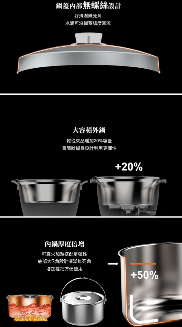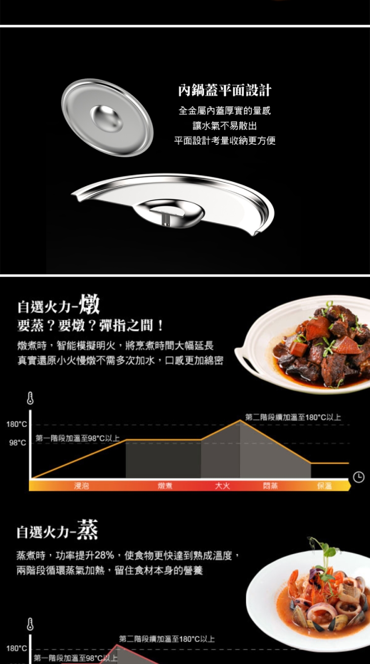 ★ 首創兩段式溫控,旺火快煮,微火細燉。