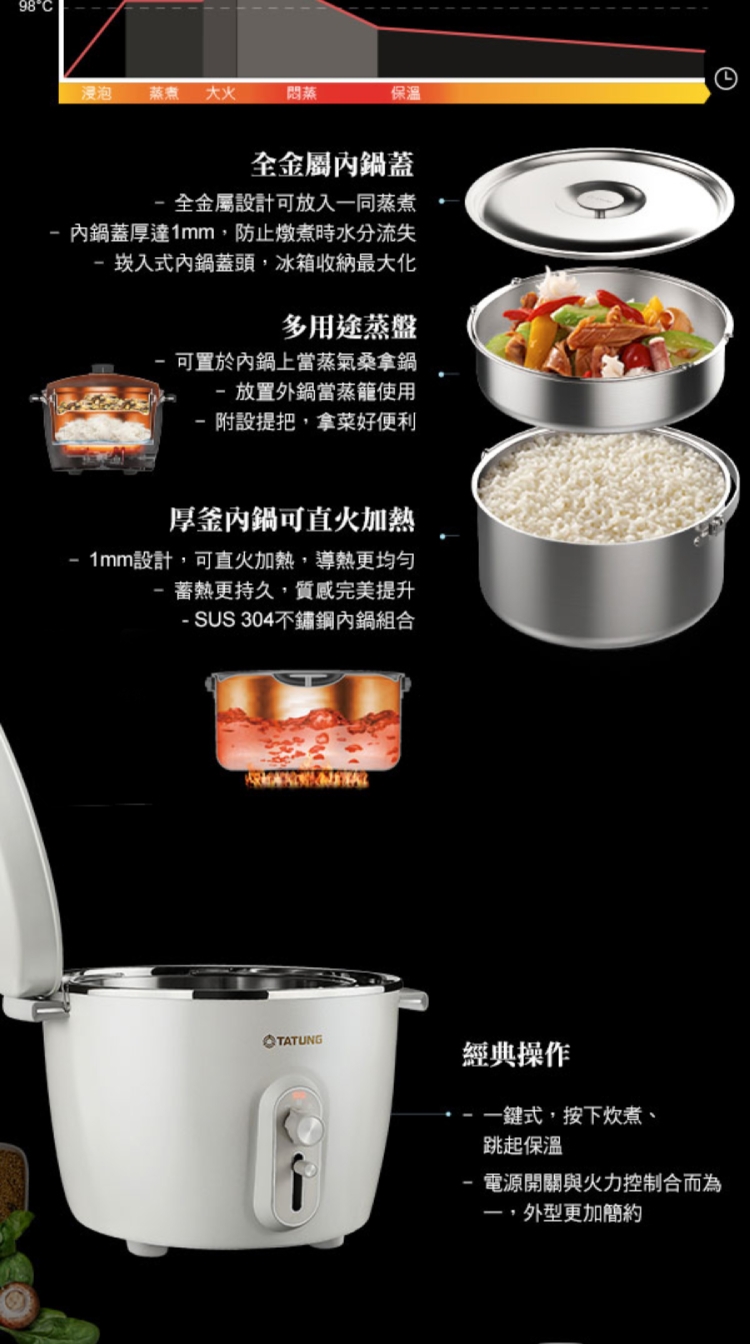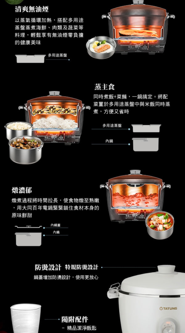 ◆ 煮飯/粥、蒸、滷、燉多用途。