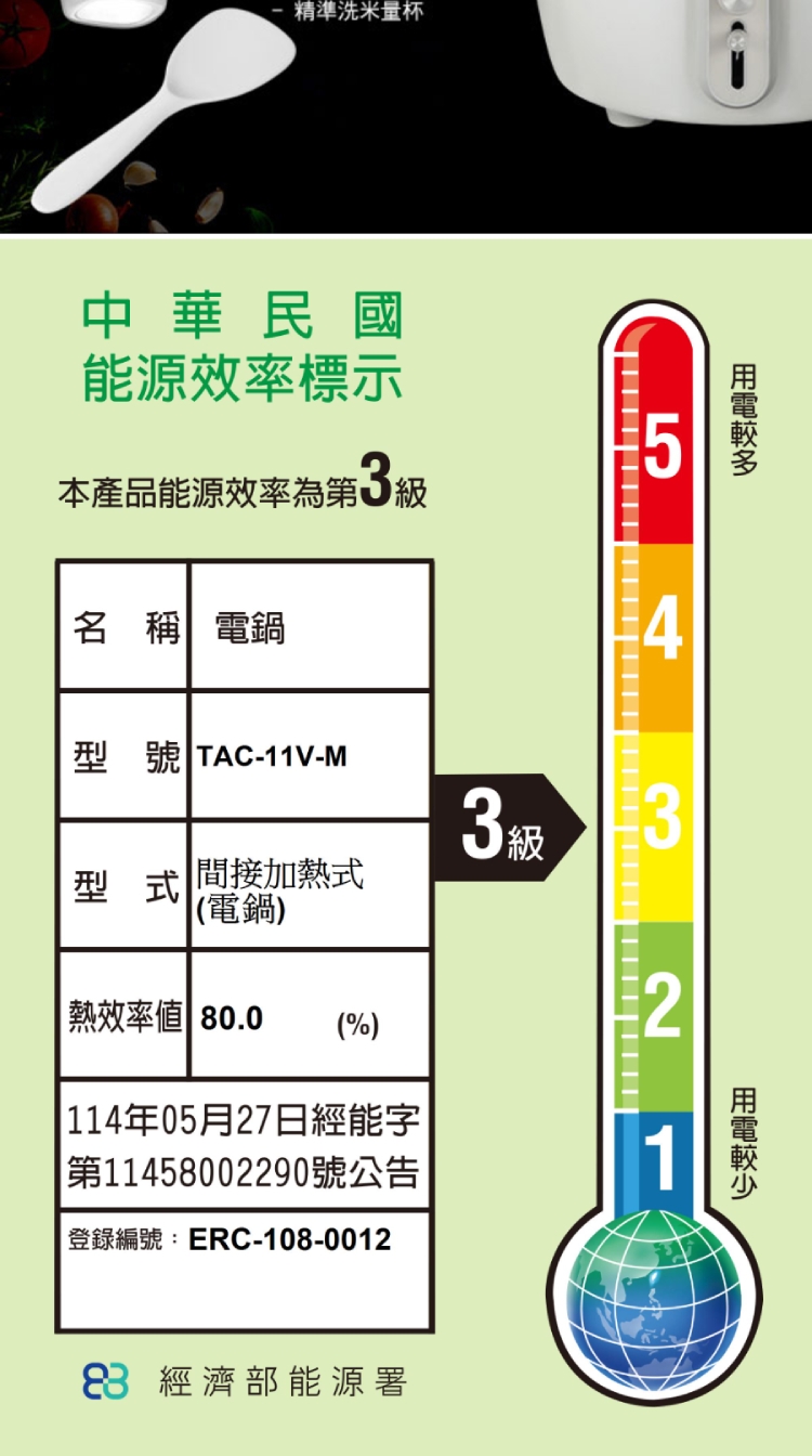 ◆ 11人份電鍋,最大煮飯量:1.98L