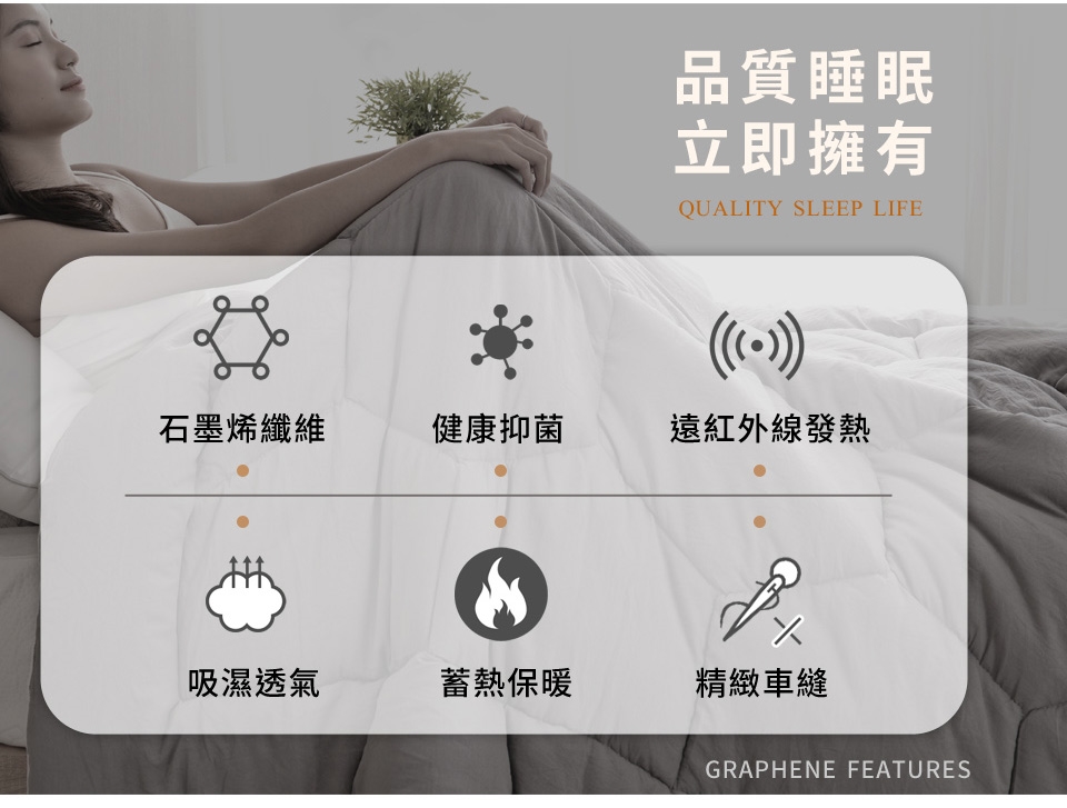 主商品:石墨烯科技被x1件與贈品:石墨烯科技被x1件皆開放體驗,鑑賞期間內,敬請搭配被套或防水布等相關衛生防護措施再行試用,商品須維持原包裝完整及無髒汙方可退貨,表布一經下水或沾染異味,或包裝、吊卡、損毀,恕不退貨。