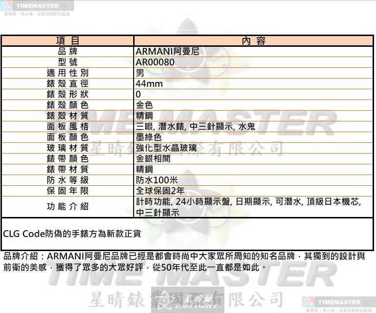 備註CLG Code防偽的手錶方為新款正貨