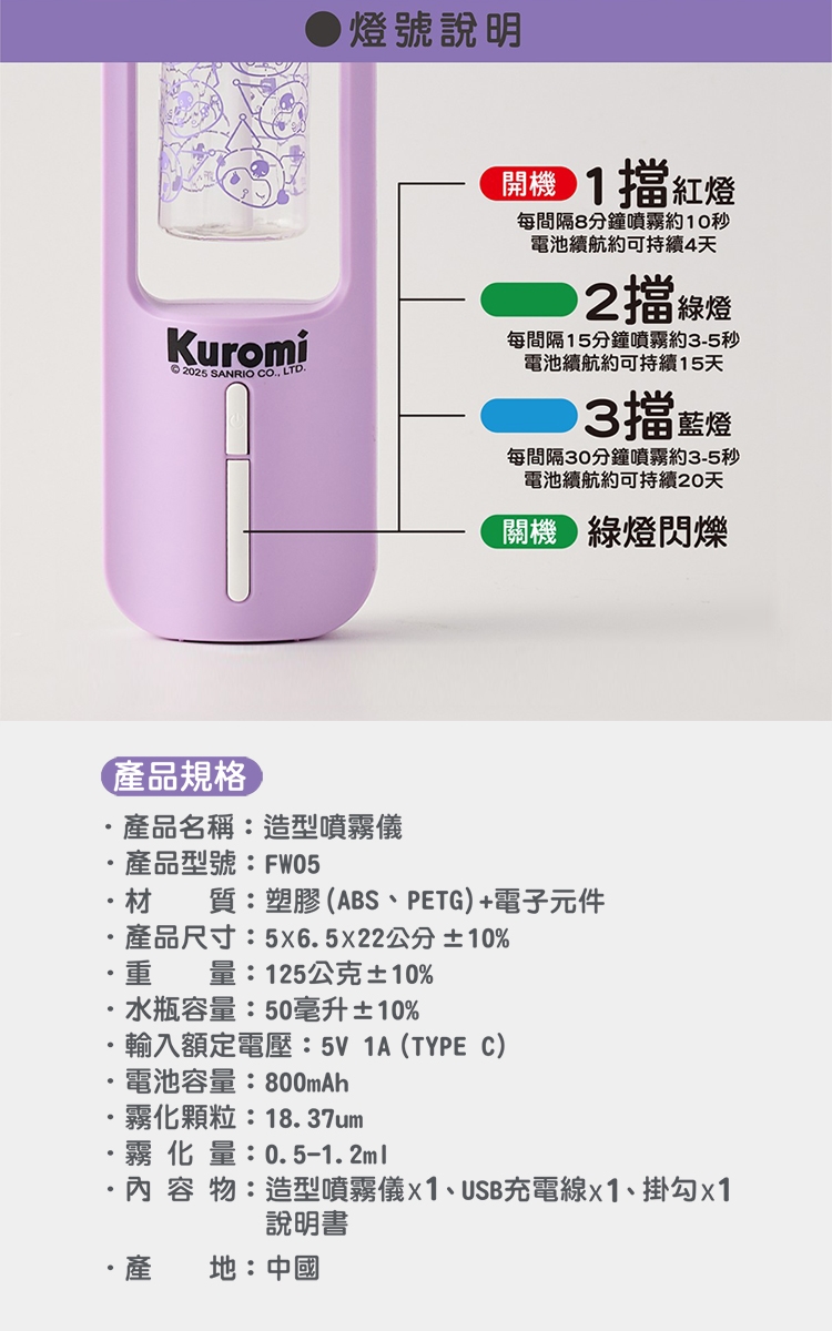 產品名稱:三麗鷗造型噴霧儀