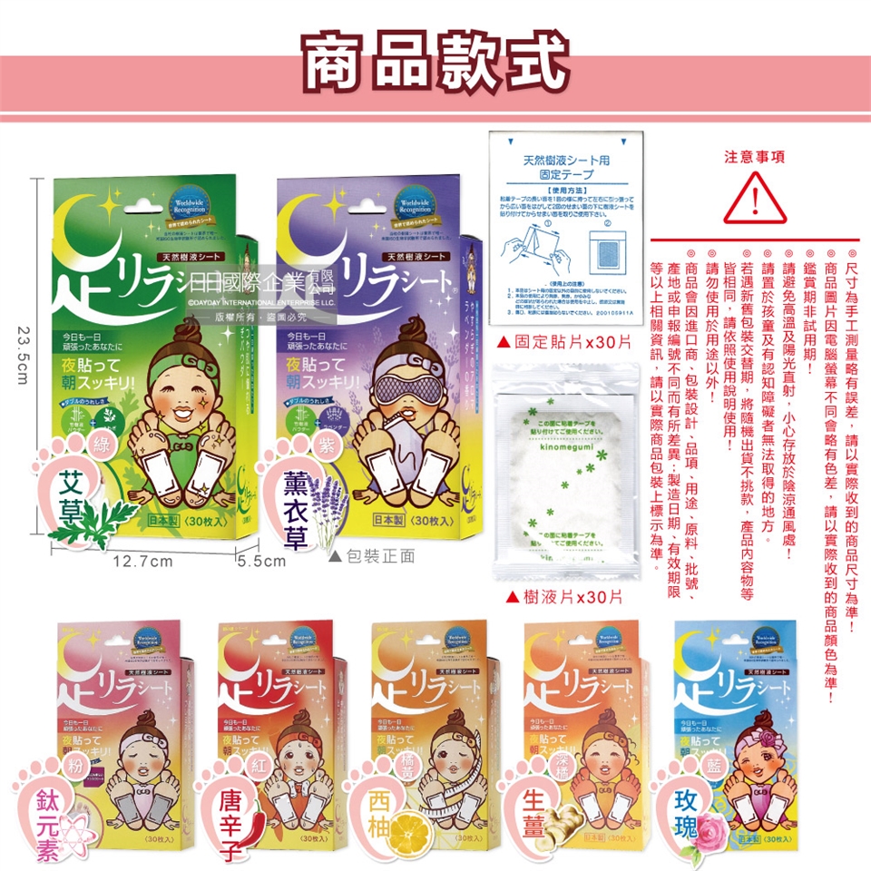 ●款式:艾草(綠)、薰衣草(紫)、生薑(深橘)、鈦元素(粉)、西柚(橘黃)、唐辛子(紅)