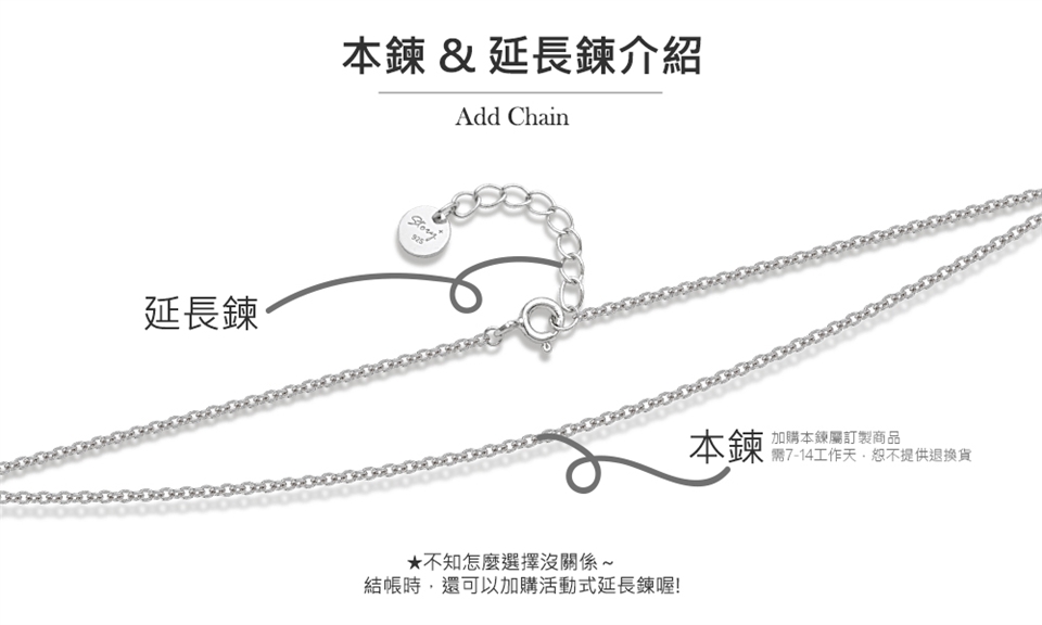 鍊長:15公分銀鍊+2.5公分延長鍊
