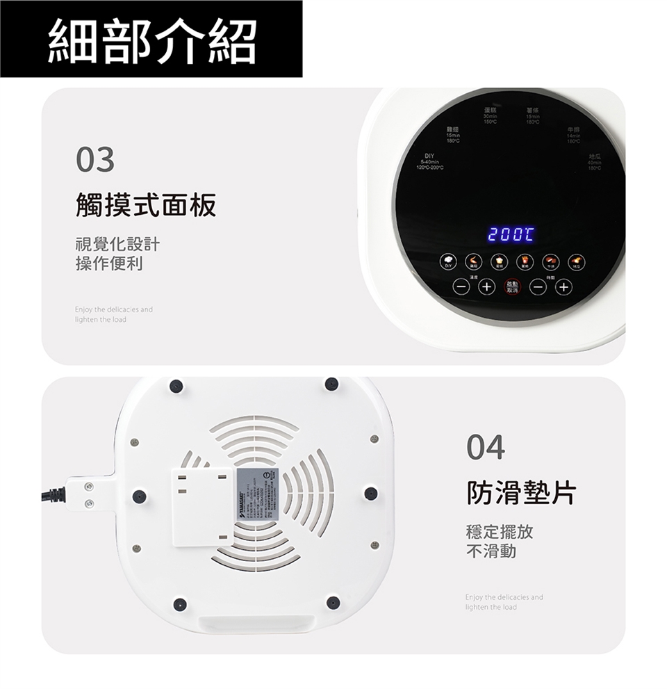 ● DIY功能設計:時間可調節1~60min,溫度可調節80℃~200℃,讓烹調高手盡顯廚藝