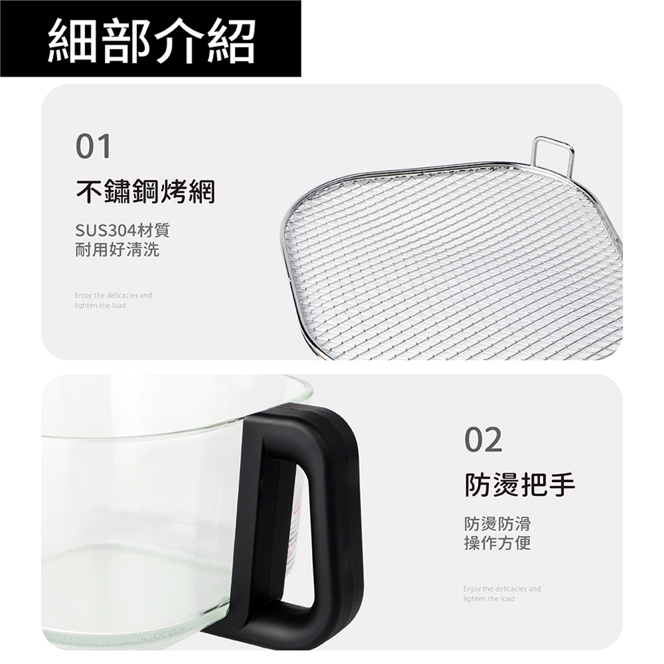 ● 採用加厚5.5mm全透視玻璃鍋+SUS304不銹鋼烤網,無塗層,不怕釋放塑化劑。