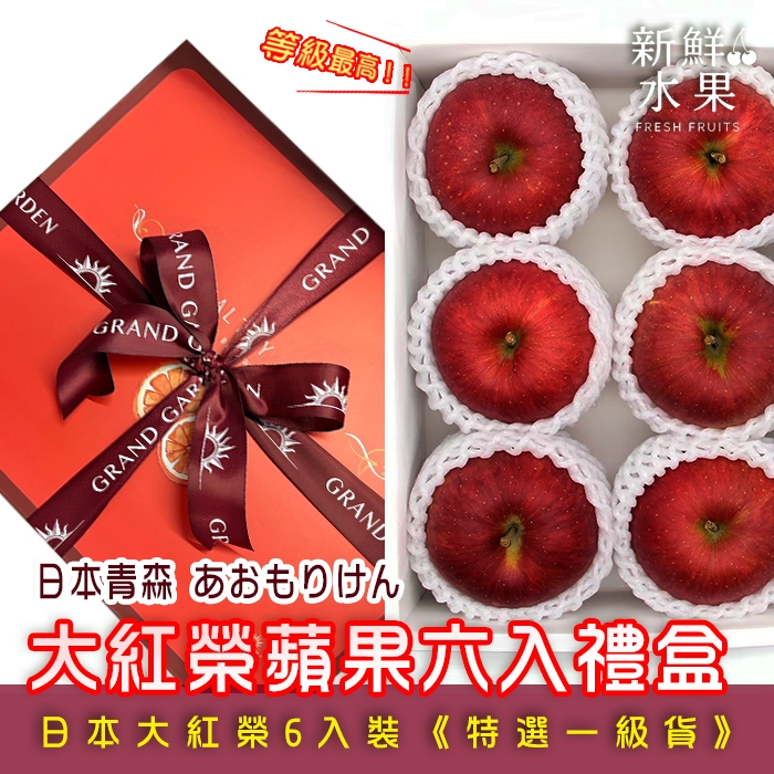 【新鮮水果】等級最高!!日本青森大紅榮蘋果 6入禮盒《特選一級貨》