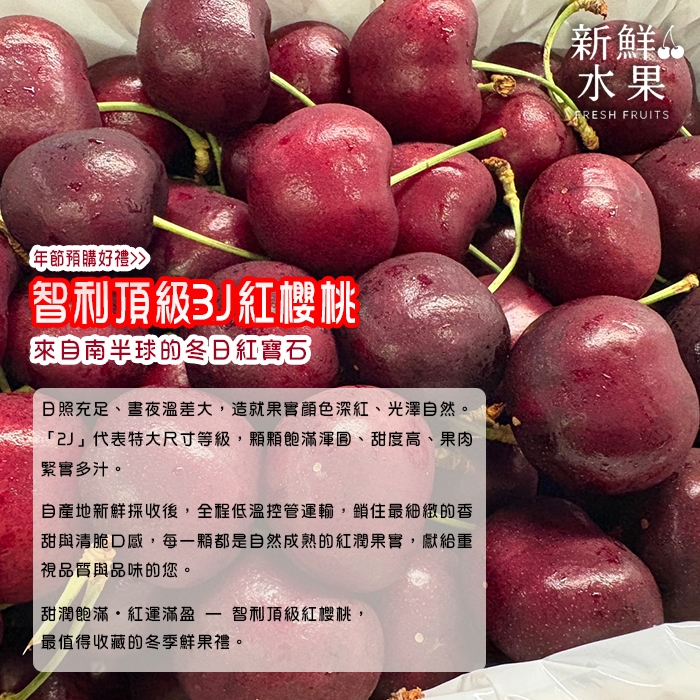 🍒 精品櫻桃 |果粒飽滿亮澤、風味濃郁,禮盒視覺瞬間升級。