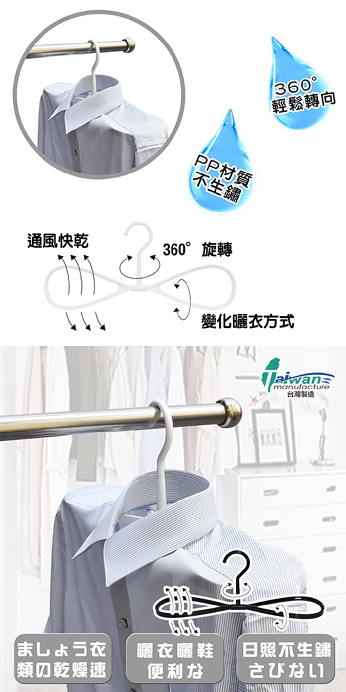 ★ 1.新型「8字型」「可旋轉」曬衣快乾衣櫥收納多用途衣架