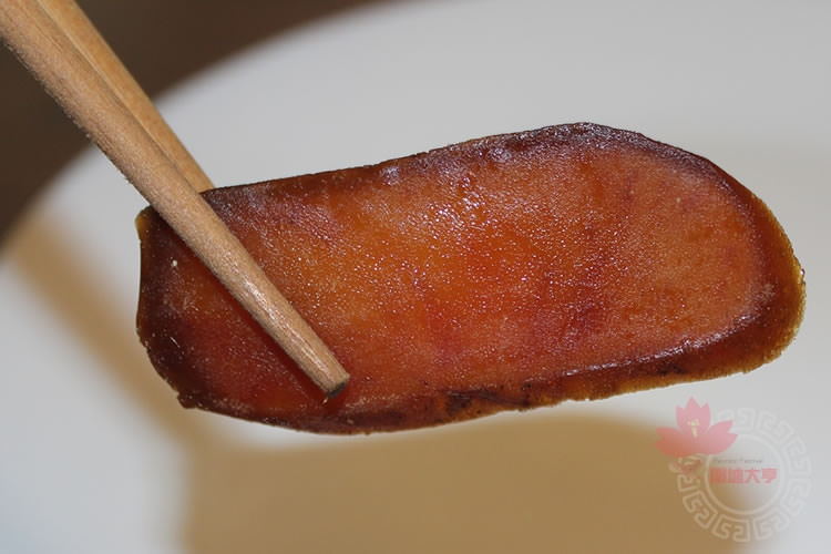 野生烏魚子外觀呈黑褐色,血絲明顯,油脂度高達80%,與養殖的橘紅色完全不同喔,嚐一口就知道正港的海味啦!