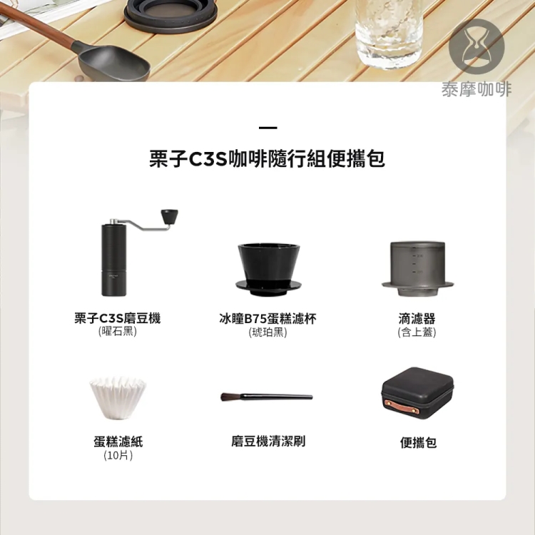 - 內容物包含:手搖磨豆機x1、蛋糕濾杯x1、滴濾器x1、蛋糕濾紙x10片、清潔刷x1、專用便攜包x1