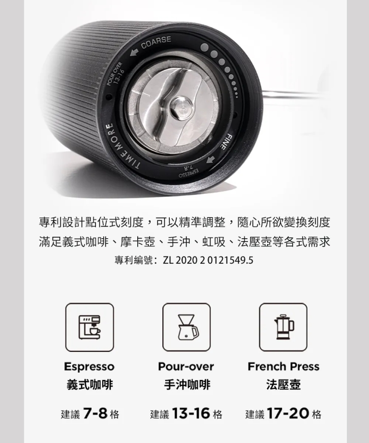 - 磨豆機材質:鋁合金、不鏽鋼