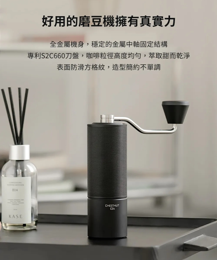 - 磨豆機:專利研磨刀頭,研磨均勻。