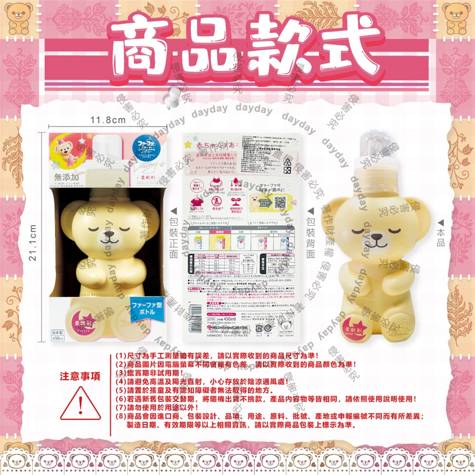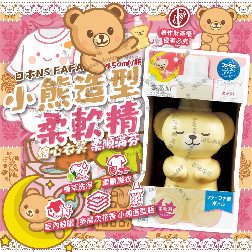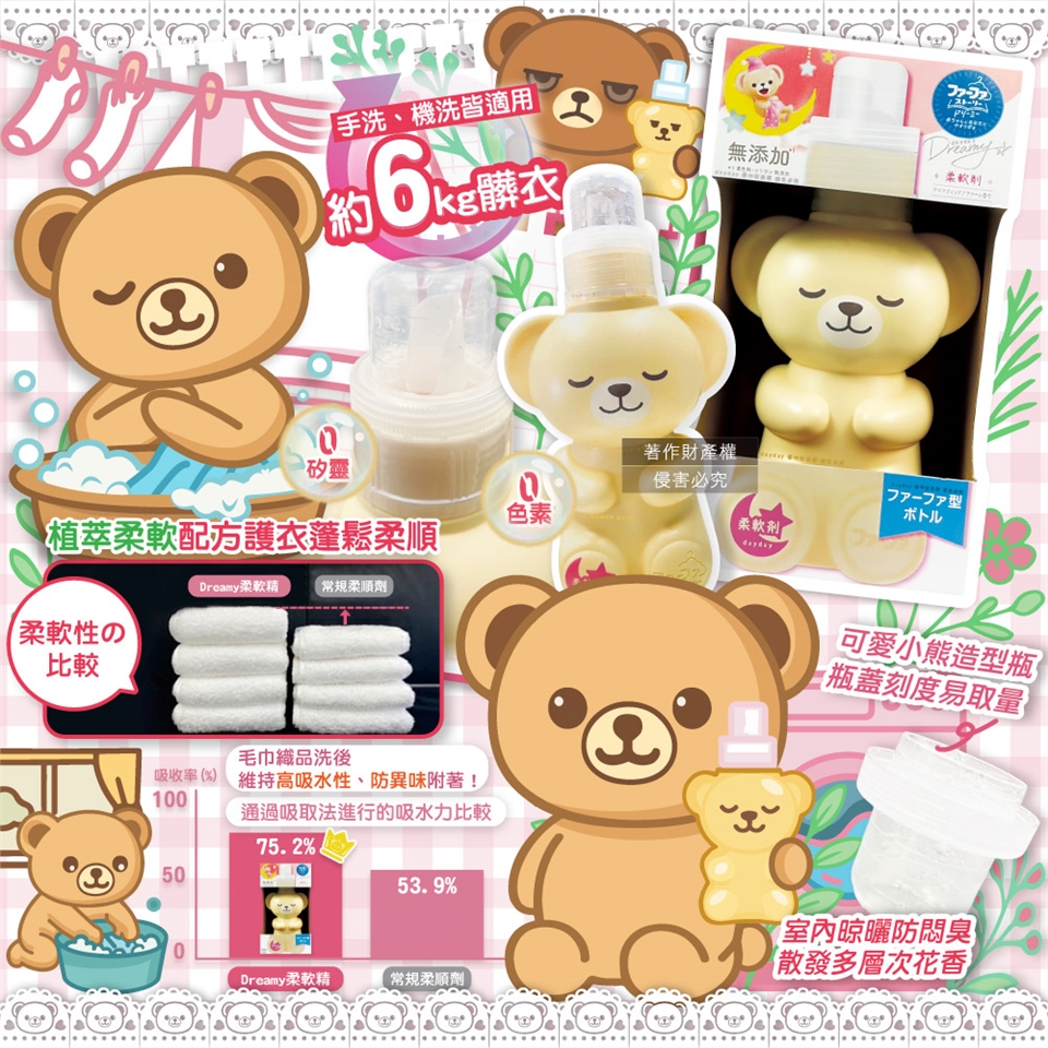●品名:繪本系列Dreamy小熊造型植萃香氛柔軟精