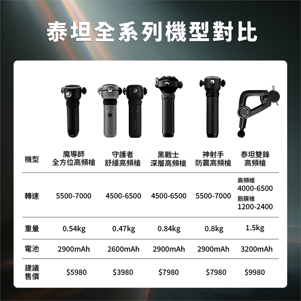 魔導師、守護者、黑戰士、神射手、雙鋒款,從轉速、重量到電池容量一次清楚比較,幫助你找到最適合的機型。