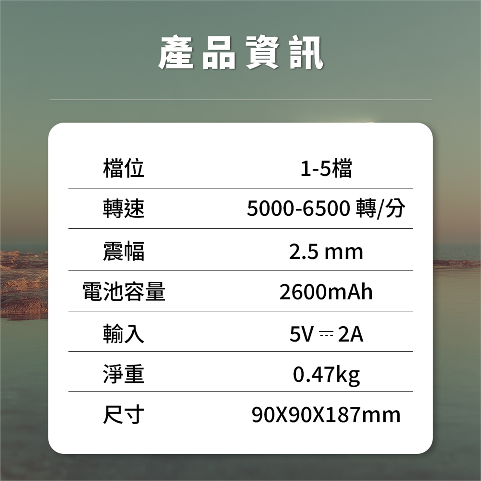 續航時間為70–150分鐘,若每天按摩10分鐘,可持續至18天。