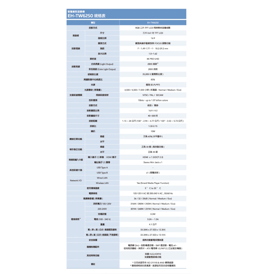 高色彩亮度: 2800lm彩色亮度/白色亮度