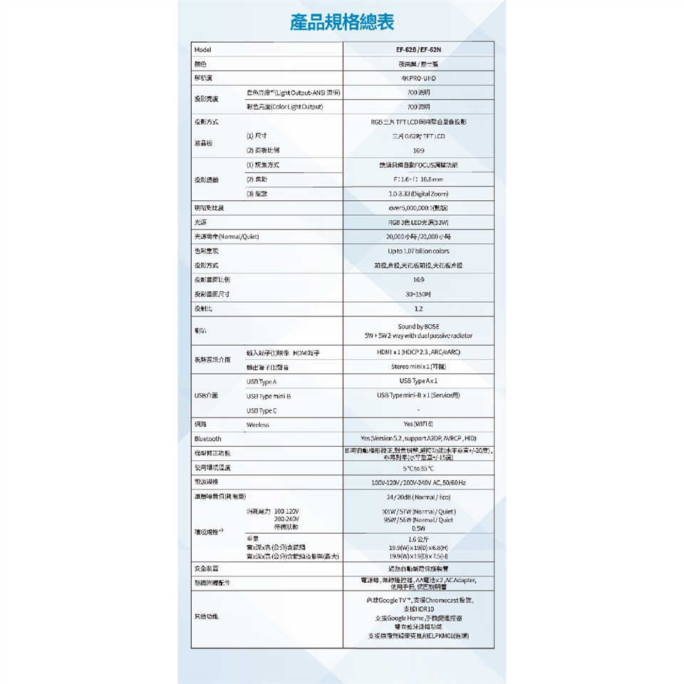 昌運監視器 EPSON 愛普生 Lifestudio Pop Plus EF-62N 智慧迷你亮彩引擎投影機- 爵士藍 19.9*19*6.8 cm 1.6kg 26900