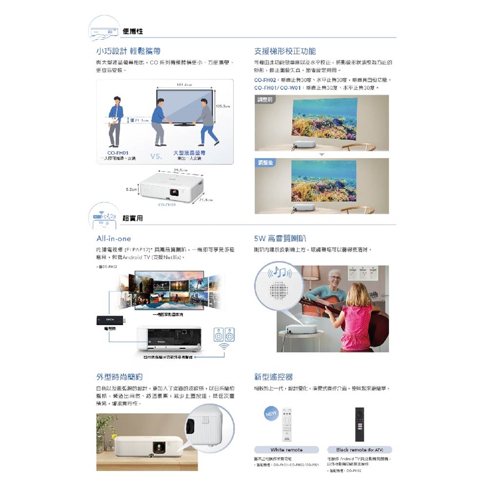 輕便易攜的尺寸與手動式梯形校正功能,一個人也能輕鬆安裝