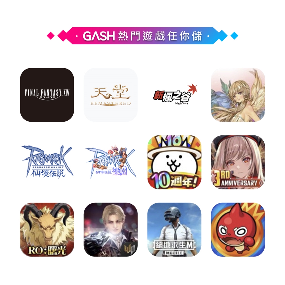 1. 適用遊戲-星城、新楓之谷、怪物彈珠、老子有錢、明星三缺一......詳見GASH官網。