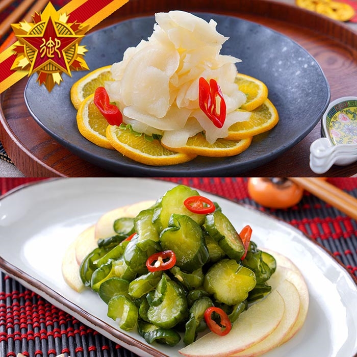 姥姥古法蜜白玉:檸香蘿蔔,清新爽口;小黃瓜佐蜜,微甜脆嫩。酸甜交織,清爽解膩,佐餐小品必選。