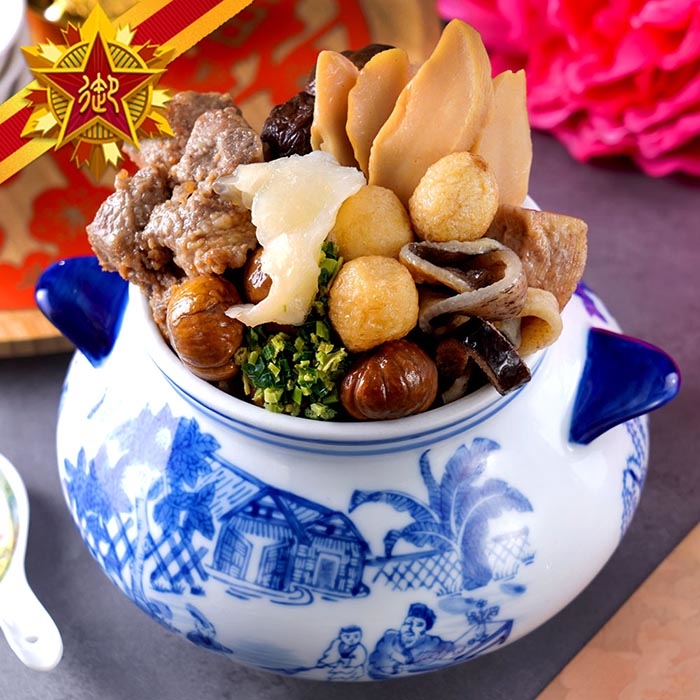 八仙海艷花膠佛跳牆:嚴選鮑魚、花膠、珠貝等珍味,慢火燉煮,湯濃料足。鮮香撲鼻,豪華奢饗,一盅盡藏。