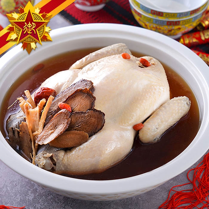 漢方人蔘燉山雞:花旗蔘入湯,佐以土雞慢燉;湯色清亮,甘潤回甘。補氣益神,四季皆宜,全家共享。
