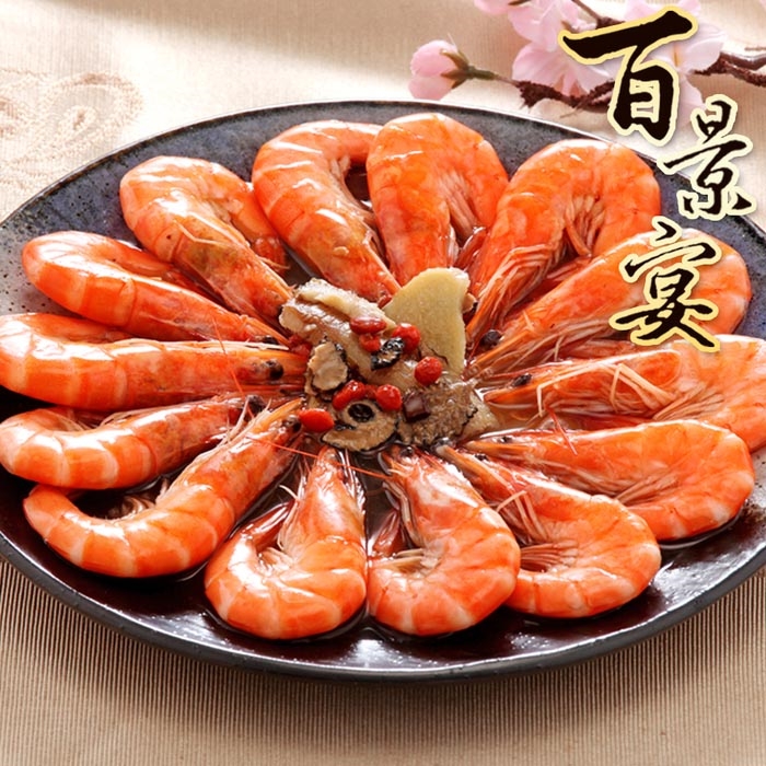 漢方醉鮮蝦:水、鮮蝦、鹽、紅棗、枸杞、當歸、川芎、烏醋。