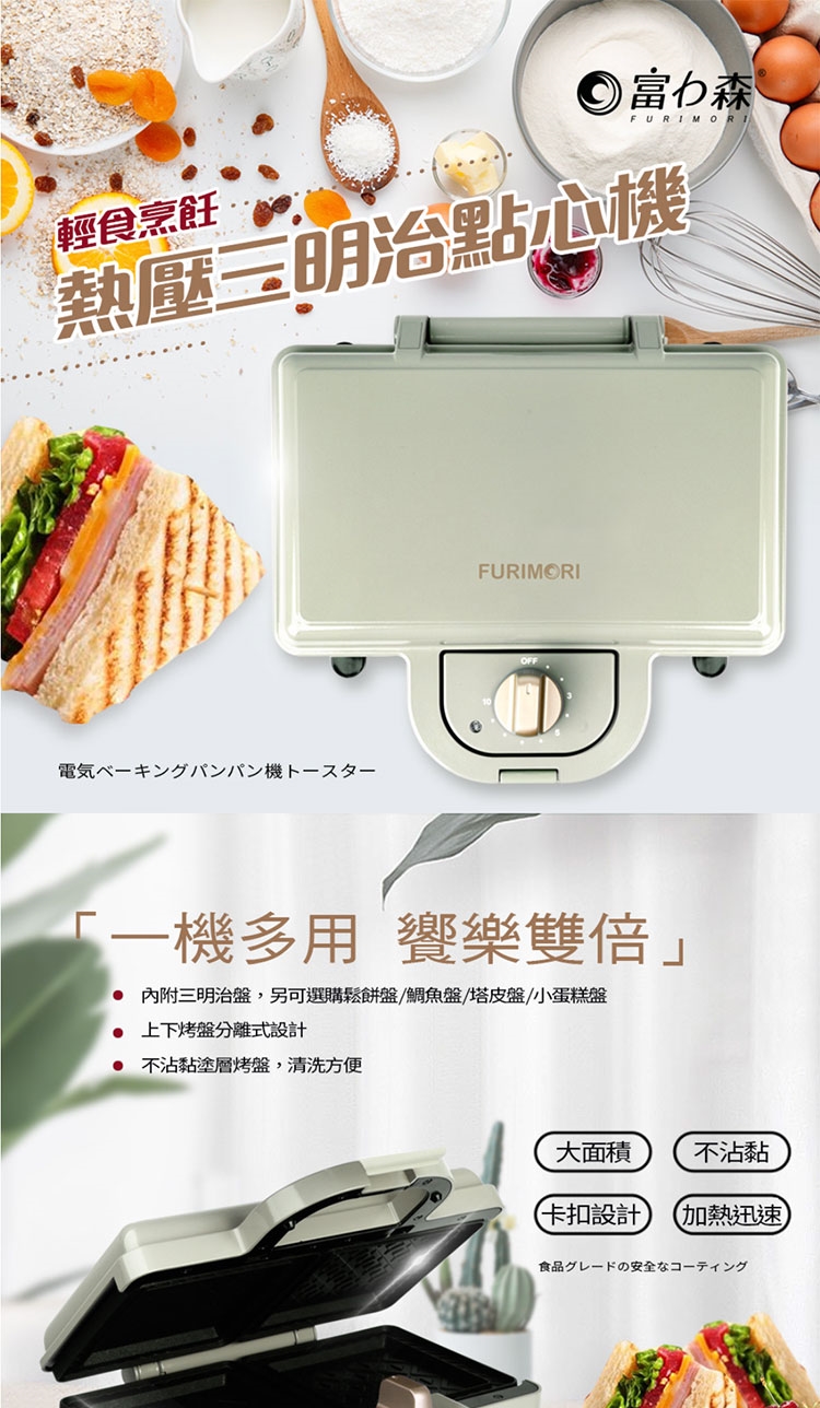 ★ 大面積烤盤,整片吐司可完整放入不需切邊,不浪費食材