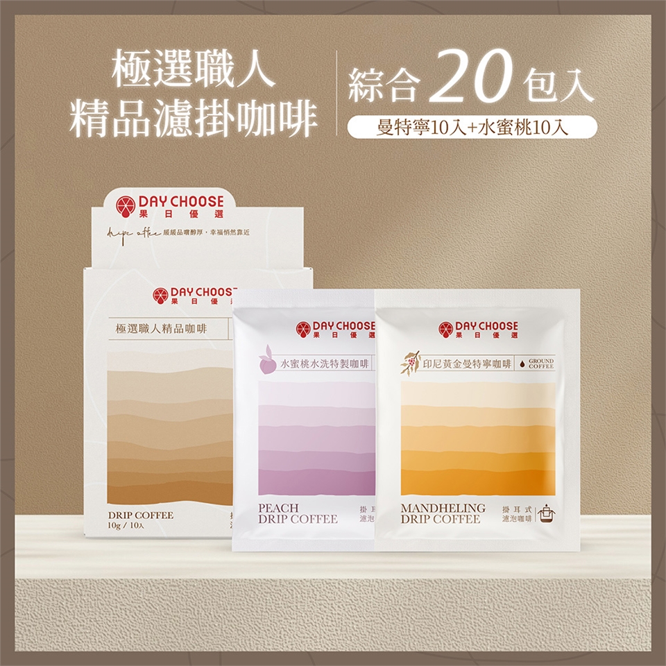 ▪︎  組合內含:(1) 綜合-曼特寧+水蜜桃各10包 (2) 黃金曼特寧20包 (3) 水蜜桃水洗20包