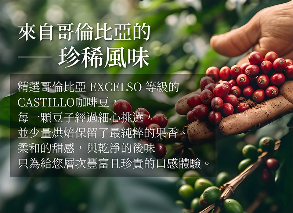 1. 選用來自哥倫比亞的優質產區HUILA的CASTILLO品種