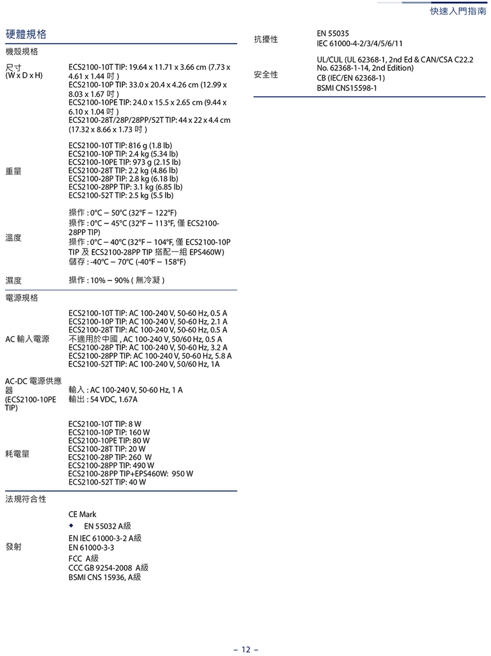 *多元管理 - 支援業界標準的CLI,Web, SNMP (v1/2c/3)和Telnet management, 提供多元的網路管理介面給用戶