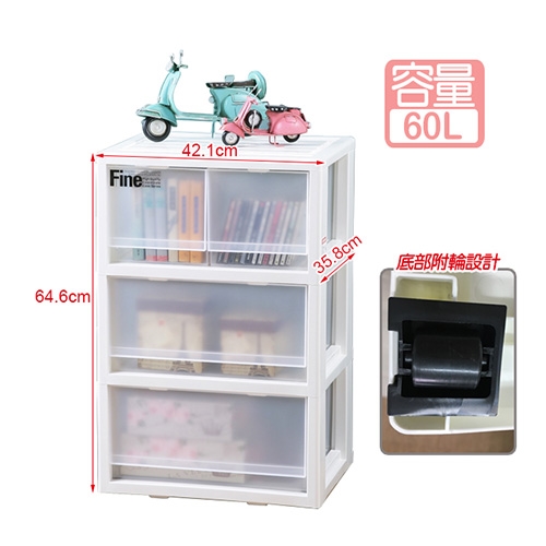 現在推薦您這款~《真心良品》雪莉3層2+2抽收納櫃60L簡約時尚的設計、貼心隱藏式把手讓外觀線條看起來簡單大方, 有單抽雙抽式滿足您收納需求~分類最方便,透明白略帶霧面的外盒設計尋找收納物品皆方便,可堆疊讓空間運用更靈活;單純線條,隱藏式活動輪,不僅更美觀讓您就算是放置了重物也照樣移動方便,這款實用及美化居家的多層收納櫃、是你最佳選擇哦。