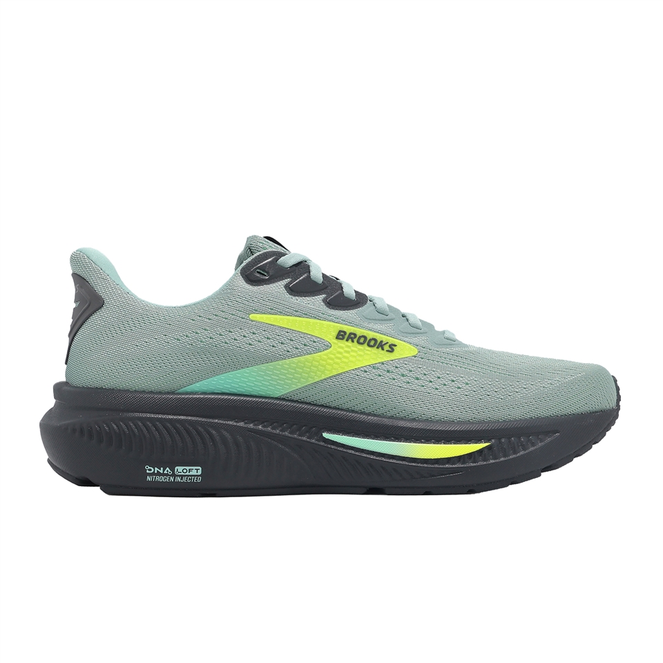 * 中底採用了 BROOKS 獨家研發的 DNA LOFT v3 中底科技,透過氮氣注入與大型球型氣囊設計,保留耐用性的同時,大幅優化避震緩衝與能量回饋,並有效減輕鞋體重量。