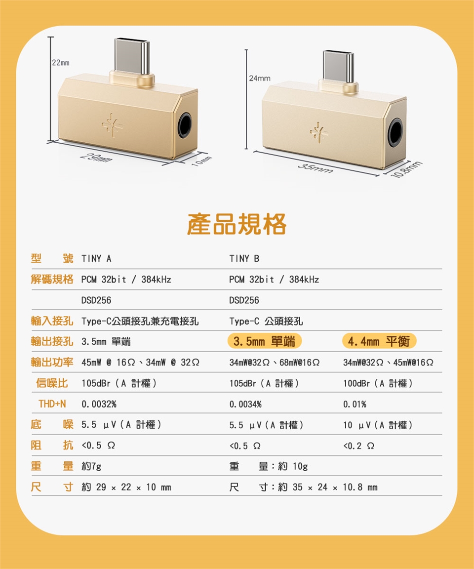 3.5mm、4.4mm雙接孔,小巧卻全能。