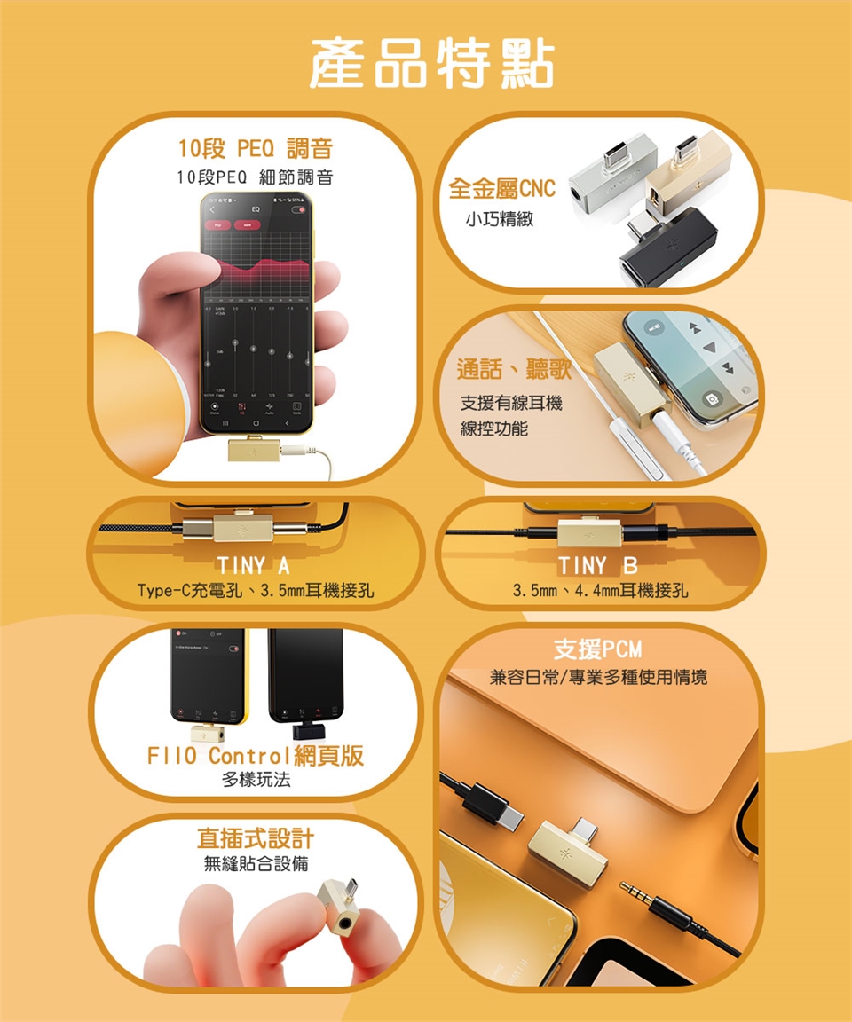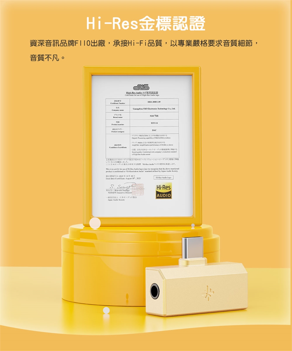 支援最高PCM 384kHz/32bit規格和最高DSD256的規格,可在手機、電腦等主流設備使用,同時相容專業級音訊情境。外形小巧、性能強大。