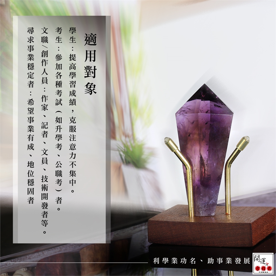 (7)對於在學的學生,在文昌位擺放紫晶鎮,有助於考運、晉升,亦能獲貴人相助。