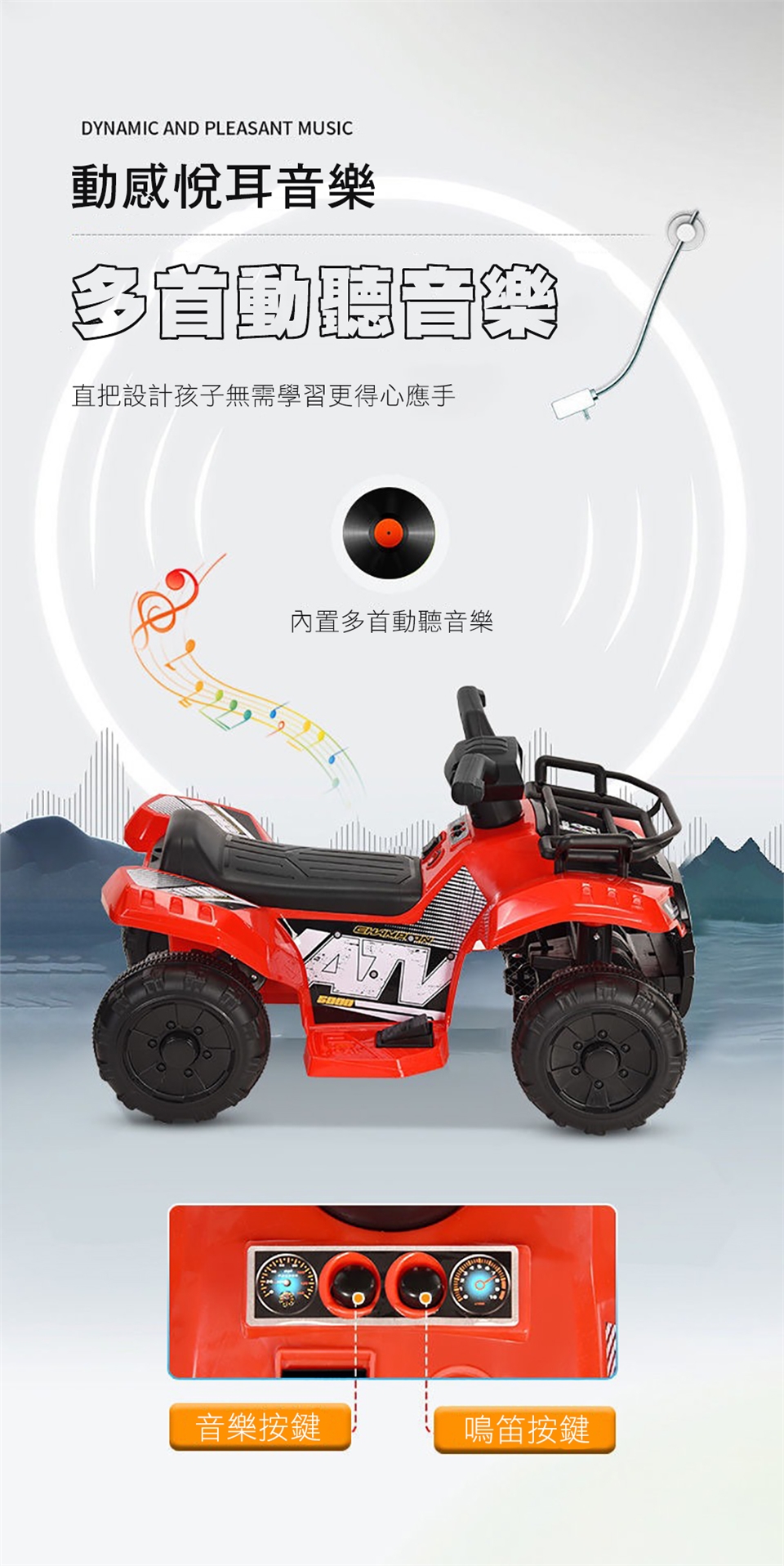 正面車身炫彩燈光.早教系統及多首童趣兒歌音樂,騎行過程中更有樂趣